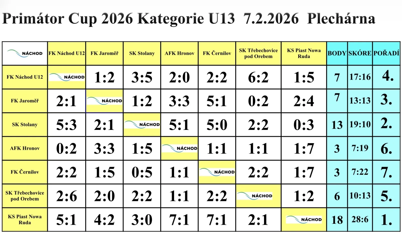 | 7. | MFK Trutnov | 15 | 33:26 | 28 |